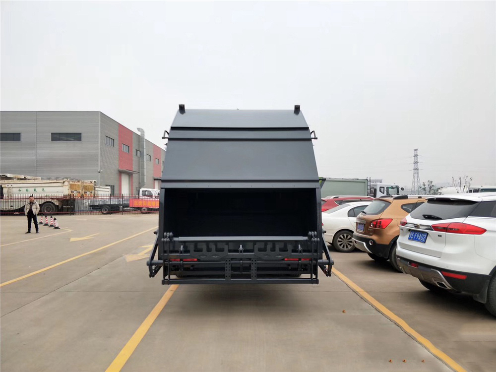 厢体材料为优质锰钢,厚度为边3底4/边4底5,厢体容积:10-12立方米。由装料机构、压缩机构、卸料机构、油泵、油箱、**阀等组成的液压机构组成。装料机构由支架、连杆机构、凸轮、挂钩等组成,在油缸作用下,将垃圾桶内的垃圾自动翻转倒入料斗内。通过刮板进行破碎压缩,滑板带动刮板将压缩后的垃圾装入车厢内。待车辆到达垃圾填埋场内,液压举升后部垃圾填充器,使推铲向后运行,直**将垃圾全部推出厢体,完成卸料工作。